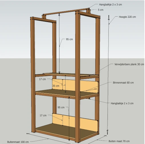 Hoge kraam per maand 100cm breed 2 planken van 1 meter breed en 60cm diep *Minimale huurperiode 1 maand |